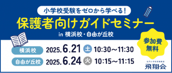 【小学校受験をゼロから学べる】飛翔会 横浜校・自由が丘校で保護者向け無料セミナー開催 ~志望校の選び方から家庭での準備方法まで、受験スタート前の不安を解消!~