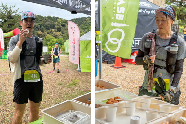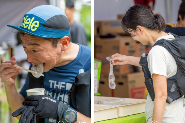 大会会場や8km地点のエイドステーションで選手は栄養補給や体のケアなどを行い、コンディションを整えて走り続けます。