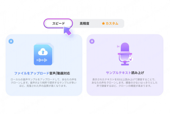 ステップ2:ガイドに従い、音声データをアップロードするか、表示されたサンプルテキストを読み上げて録音