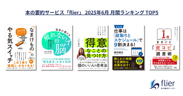本ランキングは、flierの有料会員を対象に、スマホアプリおよびウェブのアクセス数(紹介書籍の要約閲覧数)を合算し順位付け。集計期間は、2024年5月25日~2025年6月24日です。