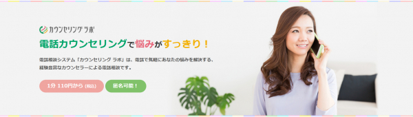 予約不要、匿名可能、1分110円からの相談料で、15分程度の短時間でも(時間制限なし)、資格を持ったプロのフラクタル心理カウンセラーから、気軽に電話でカウンセリングが受けられます。