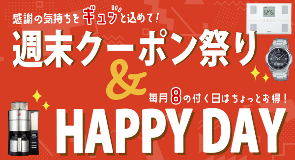 一部のセール除外品を除き、販売価格より5%OFFのクーポンを発行。(クーポン内訳:8のつく日クーポン3%+週末クーポン2%)
