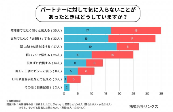 パートナーに対して気に入らないことがあった際の伝え方として、最も多かったのは、