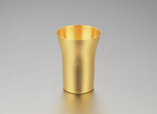 18-8ステンレスをベースに、外面には豪華な金めっき加工を施し、気品と重厚感を兼ね備えたデザインに仕上げました。冷たい飲み物はもちろん、熱いお茶やお酒にも対応し、保冷・保温性にも優れた逸品です。