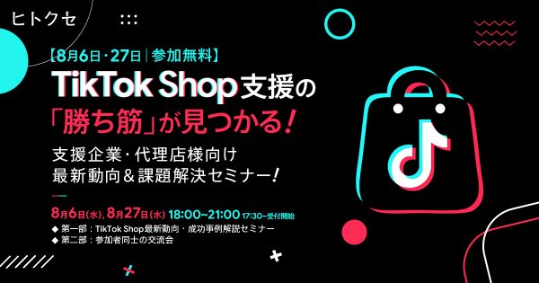 株式会社ヒトクセは、2025年8月6日(水)、27日(水)に、TikTok Shopの支援企業・代理店様を対象とした無料セミナー&交流会を開催します。