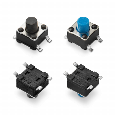 わずか 4.5 x 4.5 mm の「PTS647シリーズ」は、スペースに制約のある PCB レイアウト向けに設計されており、3 つの高さと作動力オプション(1.0N、1.8N、2.5N)が用意されています。構成に応じて、最大 500,000 回の作動をサポートし、コンパクトなデバイスで 一貫した触覚フィードバック を提供します。