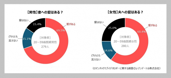 このように、男女とも6割以上が配偶者に「愛がある」と回答しています。