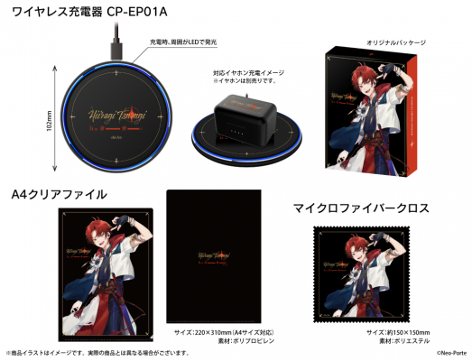 また、同時に描き下ろしイラストを使用したワイヤレス充電器、A4クリアファイル、マイクロファイバークロスを通常販売いたします。通販サイト「ONKYO DIRECT」および秋葉原店舗「音アニ1号店」にて、8月8日(金)15:00より販売開始いたします。
