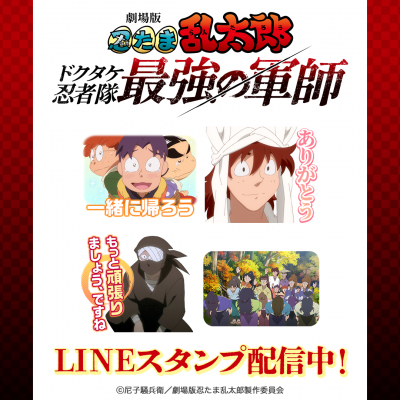 「劇場版 忍たま乱太郎 ドクタケ忍者隊最強の軍師」のLINEスタンプ第2弾がインクルーズの販売アカウントより早くも新登場!!是非、LINEスタンプでも「劇場版 忍たま乱太郎 ドクタケ忍者隊最強の軍師」の世界観をお楽しみください。