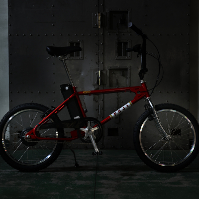 MX-Eの着想である、79年製のFUJI MX500のRedカラーを過去に店で並べていたこともあって、実物の雰囲気を大事にしながらも、フレーム/フォークともに当時のオリジナルには存在しなかったCandy RedとChromeカラーを組み合わせてアレンジしました。MX-Eは、E-Bikeでありながら当時の雰囲気への再現性にもしっかりとこだわりが見えたので、パーツにおいても ”BACK TO 70’s and RAD STYLE“ をコンセプトにセレクトし、普段から自分たちが提案し続けている「リアルなスタイル」をE-Bikeに落とし込んでいます。