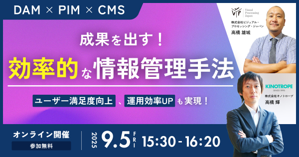 本セミナーでは、情報管理の効率化に欠かせないCMS、DAM(デジタル資産管理)、PIM(商品情報管理)の活用方法を、具体的なデモや事例を交えてご紹介します。