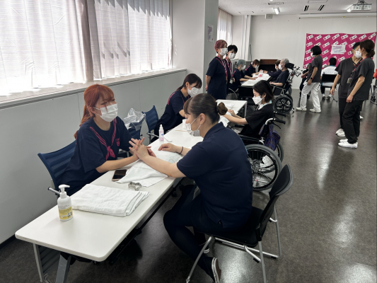 ハンドマッサージやネイルケア、パーソナルカラー診断を通して、患者様と笑顔で交流できたことがとても嬉しかったです。施術中にはたくさんのお話を伺い、楽しい時間を過ごす中で、私自身も元気をいただきました。