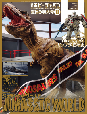 月刊ホビージャパン10月号は「ジュラシック・ワールド」&「ガンプラ45年史」!