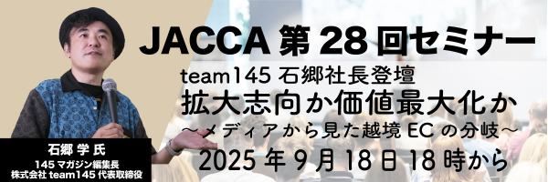 9月18日(木)18時からteam145 石郷社長登壇:拡大志向か価値最大化か─メディアから見た越境ECの分岐─(登壇者:石郷学氏)を行います。