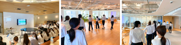 HIS本社訪問では、社内見学に加え、旅行コンサルタントの仕事のデモンストレーションを見学しました。普段は見ることのできない予約画面システムを拝見することができ、学生は観光旅行業界の理解を深めました。