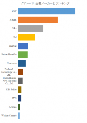 EV用接着剤市場では、従来の化学メーカーに加え、電子材料や先端樹脂メーカーなど異業種からの参入が相次いでいる。特に差別化ポイントとなるのが「機能の統合」である。たとえば、熱伝導性・絶縁性・高耐振性・難燃性などを同時に満たす高機能接着剤が求められており、単なる性能の高さだけではなく、複数要素のバランスと応用性が競争優位の鍵となる。大手サプライヤーの中には、OEMとの共同設計体制を構築し、車両設計段階から接着技術を提案する動きも見られる。このような企業は「素材提供者」ではなく「構造ソリューションパートナー」として認識されつつあり、今後さらに市場価値を高めていくであろう。