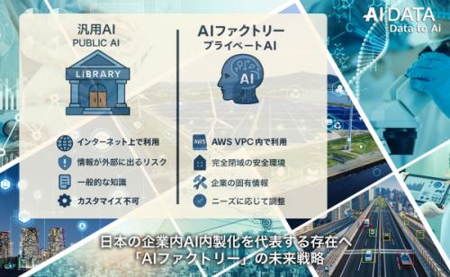 AIデータ社は、これを可能にする日本発の産業AI基盤として、AIファクトリーを全国に展開します。