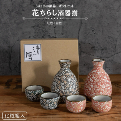 【美濃焼】花ちらし 酒器揃 木箱入りギフトセット 2色