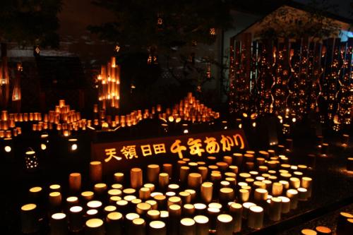 重要伝統的建造物群保存地区「豆田町」に竹灯篭が並べられる、秋の祭典「千年あかり」が、11月7日(金)~9日(日)に「日田天領まつり」に合わせ、開催されます。