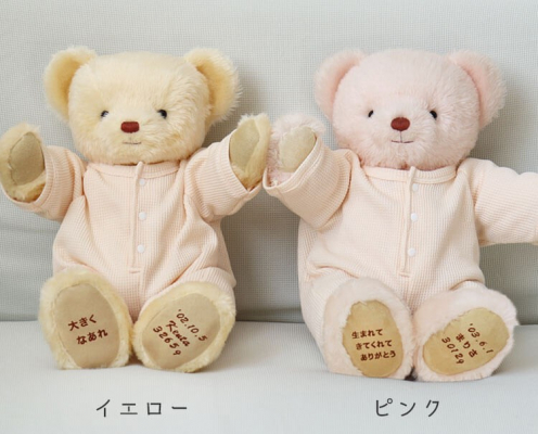 お名前や生年月日、出生体重などを刺繍で入れられる名入れ対応(オプション)も可能。お子さまの“はじめての贈り物”として、またご両親や祖父母へのプレゼントにも人気です。