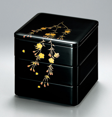 【手描き蒔絵・磨き蒔絵】越前塗 しだれ桜花 6寸 三段重