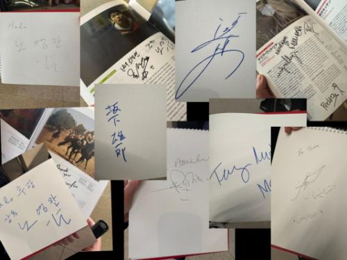 最終日のクロージングセレモニー後、関係者出入り口付近で待機した結果、本来の目的であったサインを多数集めることには成功しました。