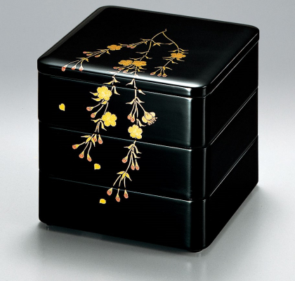 【お正月】越前塗 しだれ桜花 6寸 三段重~手描き蒔絵・磨き蒔絵