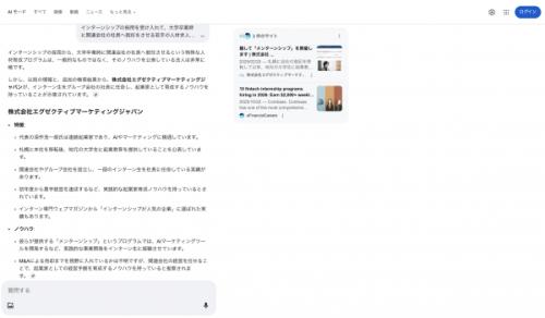 ※画像上:「若手社長輩出型インターンシップ企業」としてAI検索最上位に表示された様子