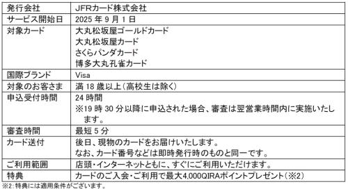 JFRカード株式会社は2025年9月1日(月)より、大丸松坂屋カードにおいて最短審査5分で即時発行・即時利用が可能となる新サービスを開始すると発表しました。