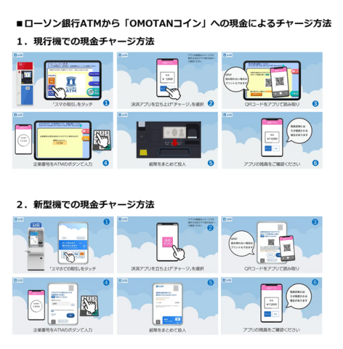 この新サービスにより、全国のローソン店舗などに設置されている13,900台を超えるローソン銀行ATMで、24時間365日「OMOTANコイン」への現金チャージが可能となります。ATMでの直接チャージが可能になることで、利用者の利便性が大幅に向上します。