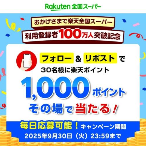楽天全国スーパーは、X(旧Twitter)を活用したポイントプレゼントキャンペーンを開催しています。