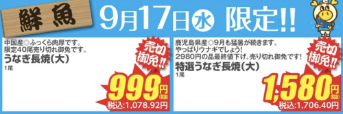 ロピア日暮里店では、9月22日(月)まで「平日最強デー 仲秋の特別バージョン」を開催中です。秋の味覚である鰻やかぼちゃをはじめ、肉・野菜など日々の食卓に欠かせない食材が特価で登場。