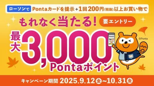 ローソンは、2025年9月12日(金)10:00から10月31日(金)23:59まで、Pontaポイントプレゼントキャンペーンを実施しています。