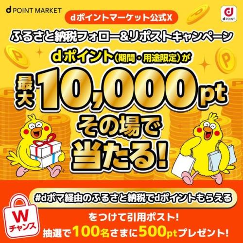 NTTドコモは、2025年9月12日(金)午前10:00から9月25日(木)午後11:59まで、「dポイントマーケット公式X ふるさと納税フォロー&リポストキャンペーン」を実施します。