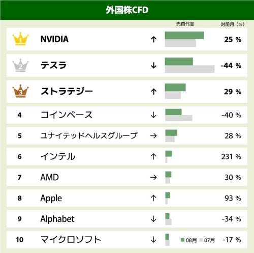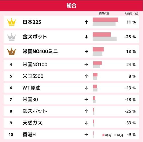 GMOクリック証券株式会社は、2025年8月のCFD(差金決済取引)売買代金ランキングを発表しました。