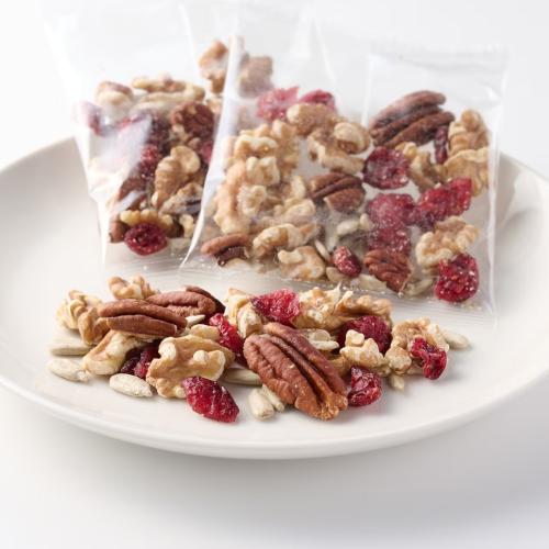 くるみ、クランベリー、ピーカンナッツ、ひまわりの種を組み合わせ、ポリフェノールに着目して作られた身体に優しいおやつ。個包装になっているため持ち運びにも便利で、仕事やお出かけのお供にもおすすめです。