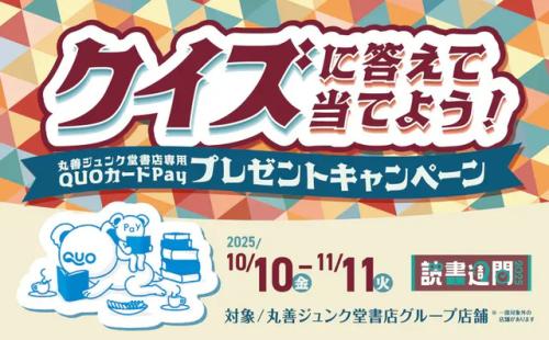 丸善ジュンク堂書店は、2025年10月10日(金)から11月11日(火)までの期間、「丸善ジュンク堂書店専用QUOカードPayプレゼントキャンペーン」を実施することを発表しました。