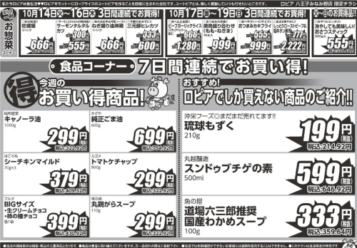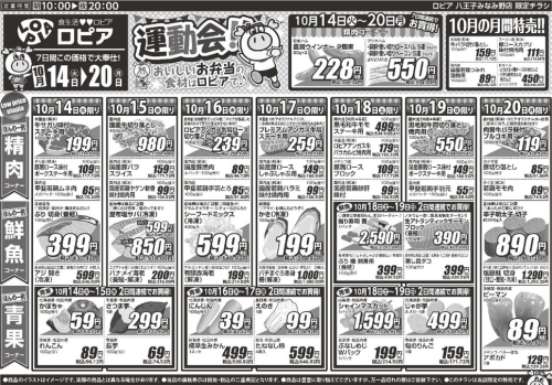 【ロピア八王子みなみ野店のチラシ】10月20日(月)までの日替わり特売情報