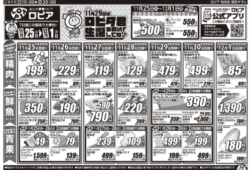 【ロピア 町田店のチラシ】12月1日(月)までの日替わり特売情報