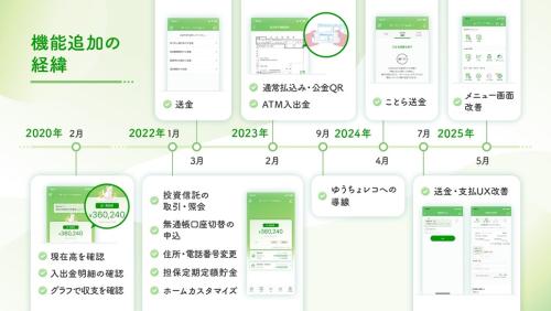 「ゆうちょ通帳アプリ」は、貯金残高や入出金明細の確認、送金、支払いなどの手続きをスマートフォンで行える金融アプリです。リリース時から「やさしいデザインとシンプルな操作性」を掲げ、利用シーンに合わせた機能追加を継続してきました。登録口座数は2024年2月に1,000万を突破し、約1年半で1,500万に到達。継続的な機能拡充と使い勝手の改善が背景にあるとみられ、20代から30代を中心に幅広い世代へと利用拡大しています。