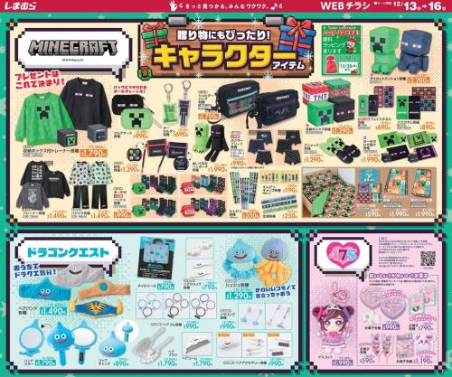 マインクラフトやドラゴンクエストといった人気ゲームキャラクターに加え、SNSで注目を集める「475(しなこ)」シリーズ、さらにレディース向けファッションまで、クリスマスギフトにも普段使いにも選びやすいラインナップです。
