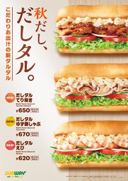 この秋、サブウェイで人気のタルタルソースが出汁のうまみと香りでパワーアップします。味の決め手となるのは、タマネギとピクルスの食感が心地よいタルタルソースに、新たに3種のかつお原料を贅沢に使用し秋らしい味わいを演出した『だしタルタル』。かつお出汁の上品な風味、香ばしい香り、そして奥深い旨みが重なり合い、具材の味わいを一層引き立てます。