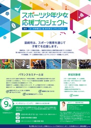 「スポーツ少年少女応援プロジェクト」とは、心身ともに大きく成長する男女の小・中学生の時期に、将来の競技生活や健やかな人生の土台を築くことを目的とし、アスリートとしての基本的な生活習慣・自己管理・心のケア・身体づくりを体系的に学ぶ、継続型セミナーです。