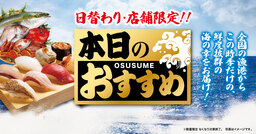 回転寿司チェーン「くら寿司」を運営するくら寿司株式会社(代表取締役社長:田中邦彦、所在地:大阪府堺市)は、日本各地のおいしい魚を日替わり(※)でご提供する新企画「本日のおすすめシリーズ」を、11月28日(金)より、東京、大阪などの計60店舗でスタートします。