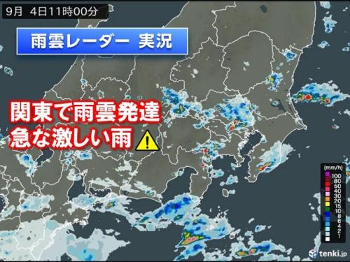 今日4日は関東では朝から局地的に雨雲が発達して、東京都江東区付近で1時間に約100ミリの猛烈な雨が降ったとみられ、記録的短時間大雨情報が発表されました。午前11時現在も所々に発達した雨雲が見られます。