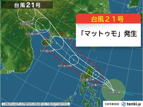 ●台風21号「マットゥモ」発生