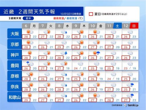 気温は、引き続き平年より高い日が多く、昼間は半袖でも過ごせる所がほとんどとなりそうです。
