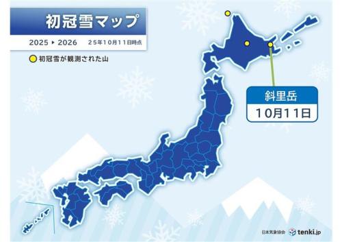 今日11日(土)、北海道の網走地方気象台で斜里岳(しゃりだけ)の「初冠雪」が観測されました。平年より3日早く、昨年より9日早い初冠雪です。