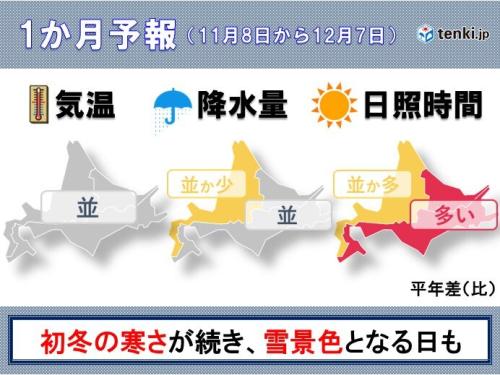 ●1週目(11月8日~14日)明日7日~明後日8日の道内は雪景色となる所も 気温も低めに経過