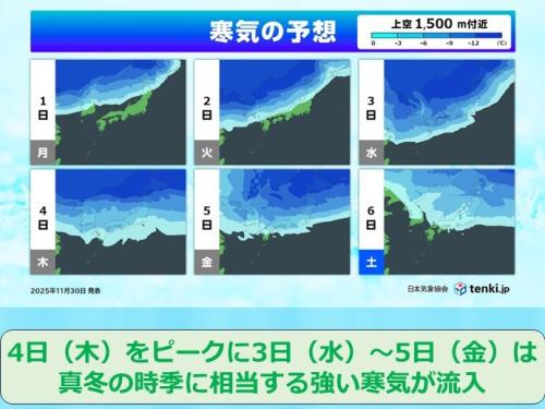 ●2日(火)以降は強い寒気が流入 5日(金)頃にかけて厳しい寒さに